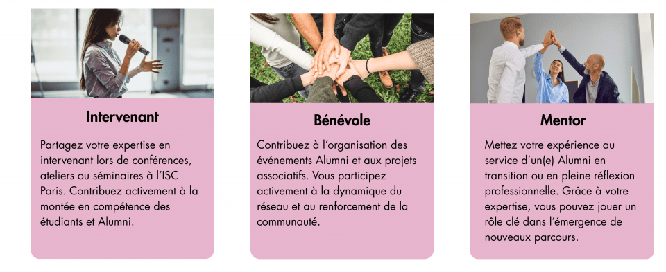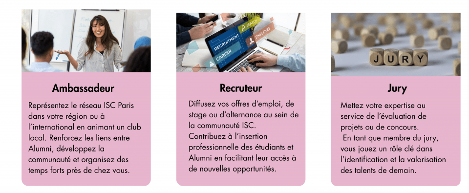 S’impliquer dans le réseau ISC Paris Alumni, c’est bien plus qu’un simple acte de solidarité. C’est une manière de contribuer à l’évolution du réseau, de partager son expertise et de soutenir notre communauté.